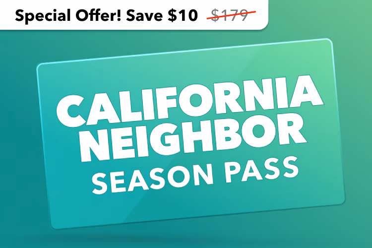 California Neighbor PassOver 150 Return Visits Select any available date for your first visit. Over 150 days for return visits, including over 25 weekend days over 9 months.